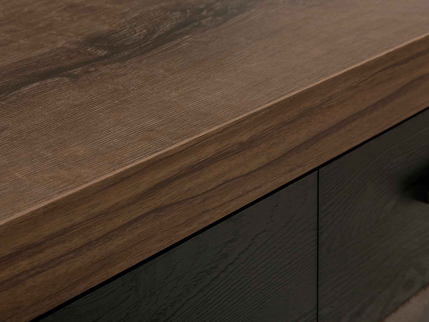 - Pay attention to the striking color combination of the oak monastery corpus and the fronts in the dark shade of black oak.